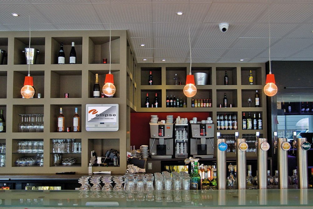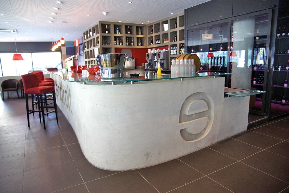 Conception et Réalisation de plusieurs aménagements pour le restaurant l'Endroit situé à Lyon. Structure en béton pour le bar - Casiers pour bouteilles de vin - Installation mobilier, vitrerie, inox. Conception et mise au point de ces espaces grâce aux plans et formats 3D.