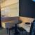 Réalisation de l'arrière bar: étagères en verre et métal; meuble bas en stratifié compact et medium mélaminé noir mat.