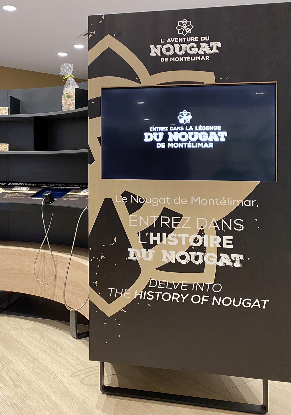 Commande et pose d'autocollants; impression sur bois - Incrustation d'écran dans le mobilier intégrant le passage des câbles.