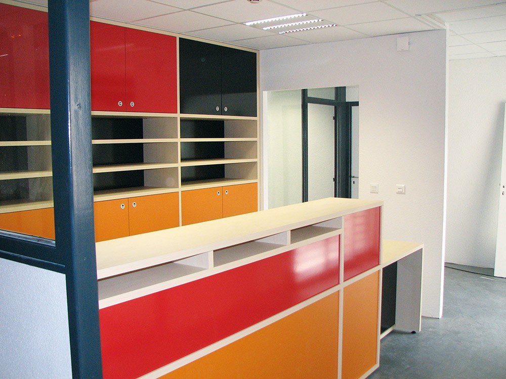 Réalisation de la banque d'accueil, avec rangements